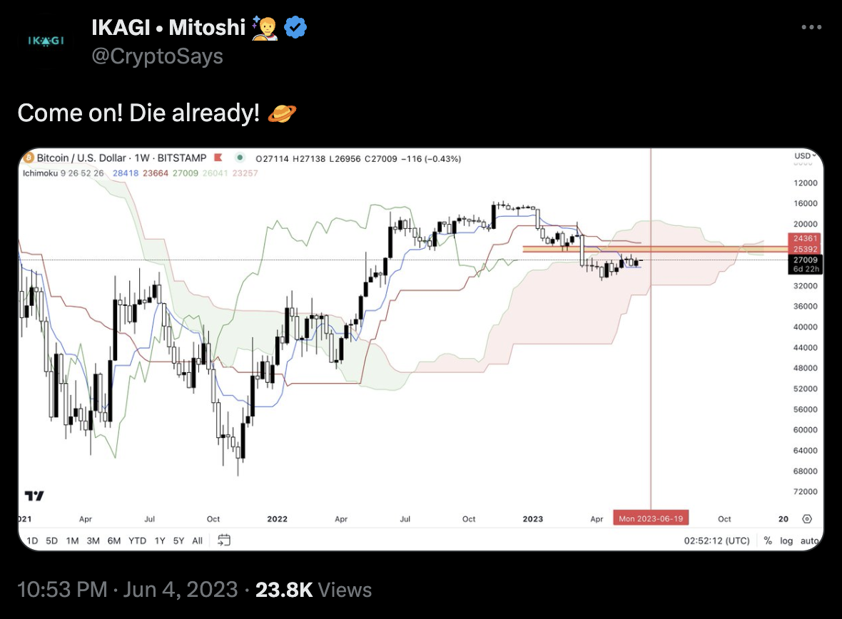 Tweet: June 4th, 2023 > “Inflection point or pivot for the price output for June 19th”
